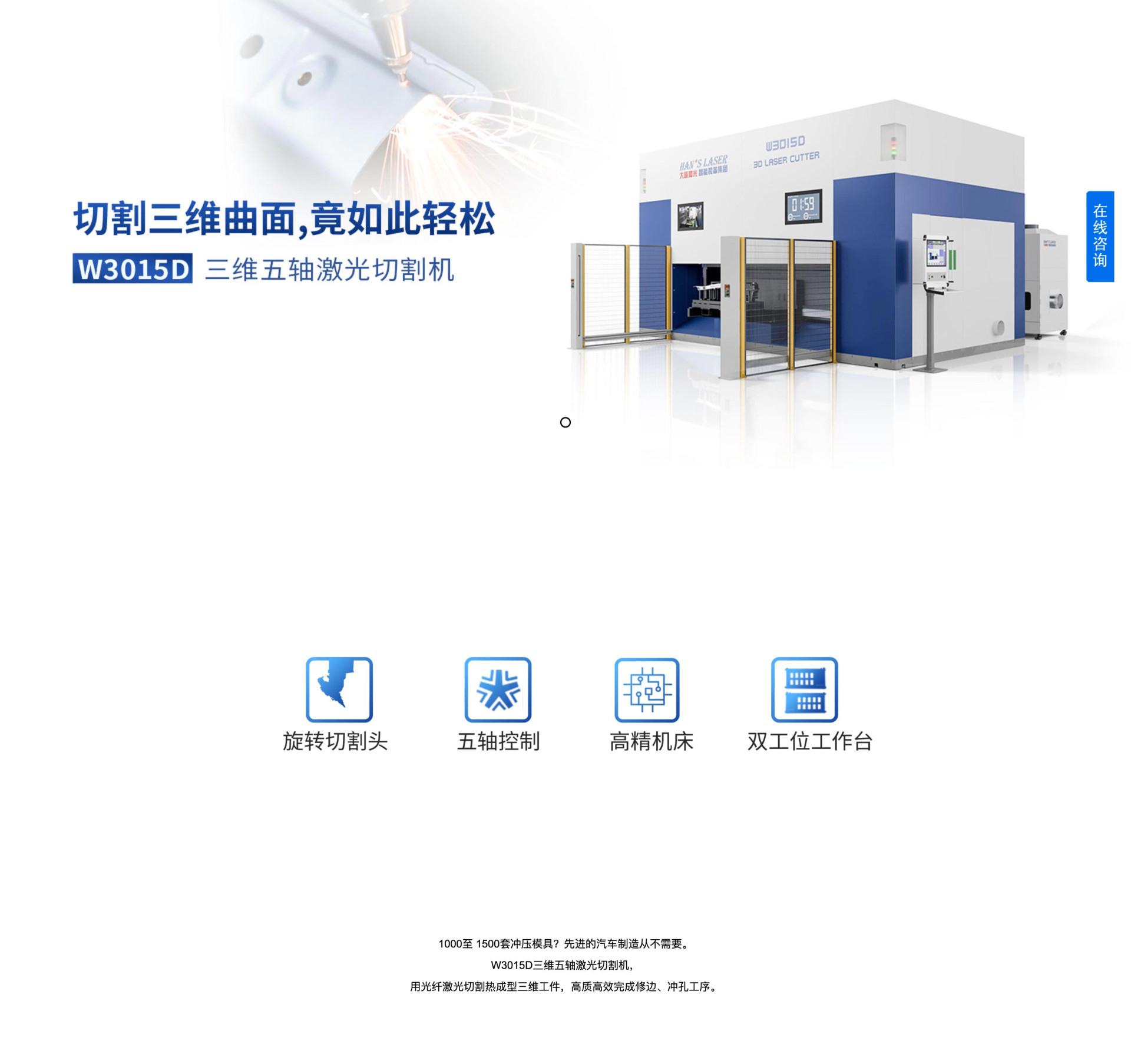 이 제품군은 자동차 산업의 열성형 부품 레이저 절단에 적합하며 안정적인 성능과 일회성 가공을 제공합니다.