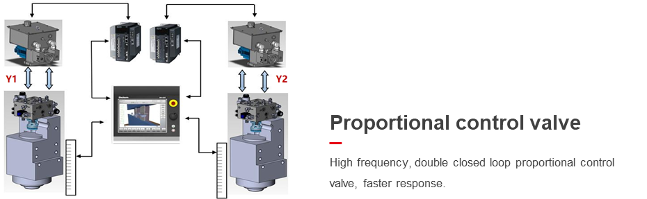 전기식 유압 서보벨브 제어를 통해 높은 상부빔의 반복 정밀도를 지속시켜 줍니다.